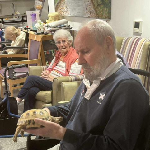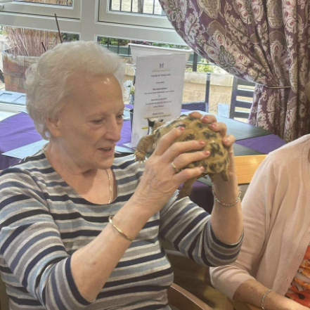 Later in the month, we marked National Animal Day with a truly hands-on experience. Calum from Cool Creatures visited the home, bringing with him an amazing selection of exotic and unusual animals. From cuddly meerkats and curious armadillos to giant millipedes and tortoises, there was something to fascinate everyone.