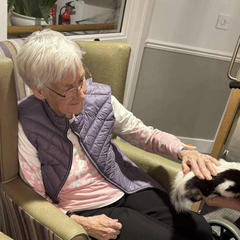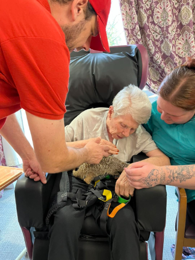Animal therapy is known for its many emotional and cognitive benefits, and this visit was no exception. There was a lovely buzz in the room, filled with laughter, curiosity, and wide-eyed wonder. The care team were right alongside residents, sharing in the experience and helping everyone feel supported and comfortable.
